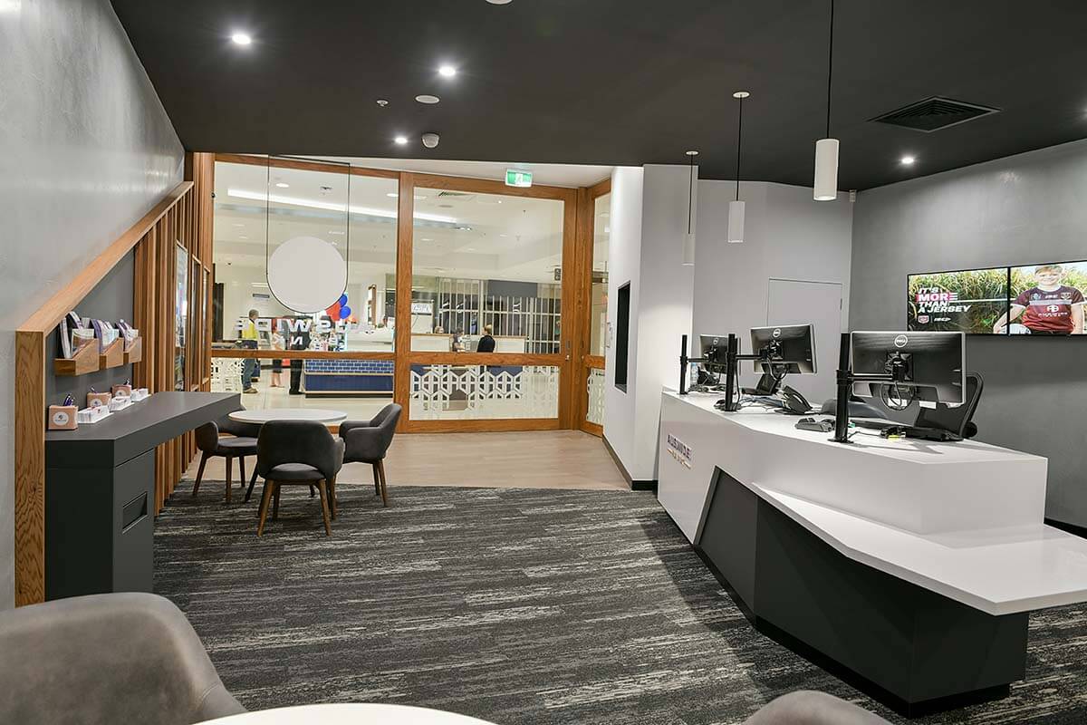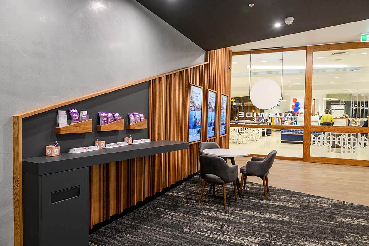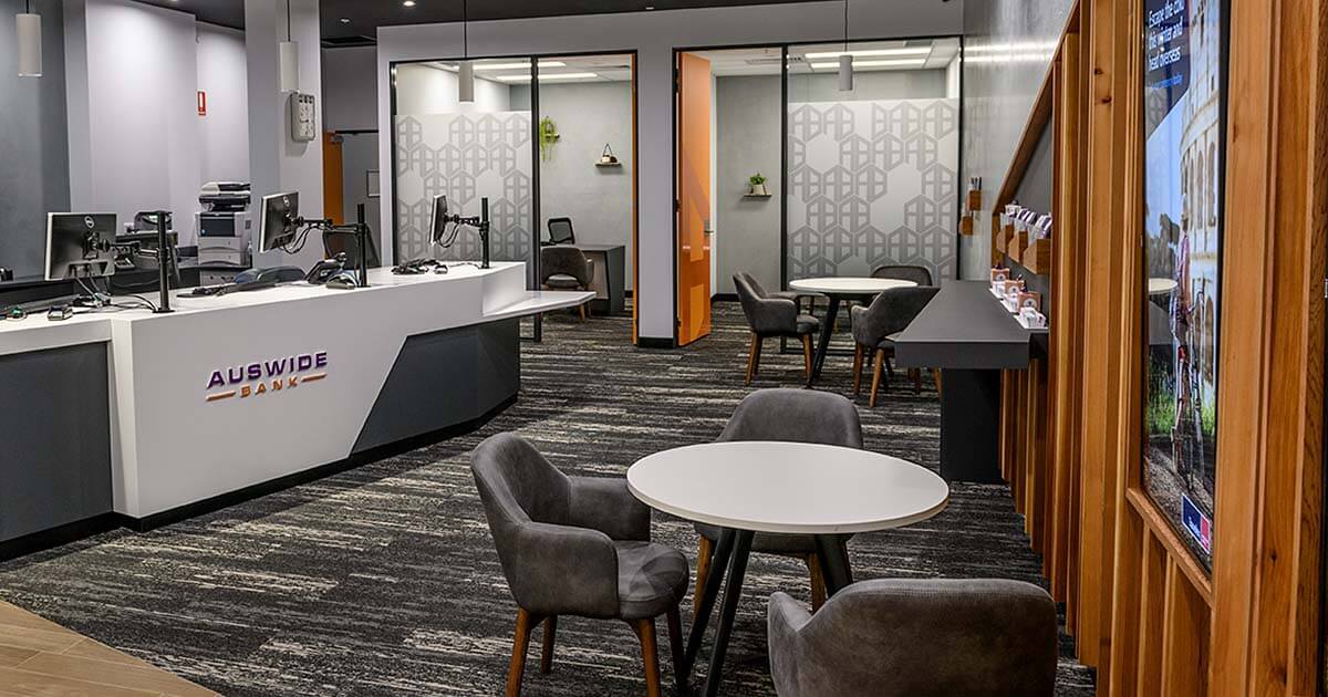 This Auswide branch is boasting an impressive shopfront of New Guinea Rosewood timber, glass and tiles incorporating the corporate logo and colour scheme.